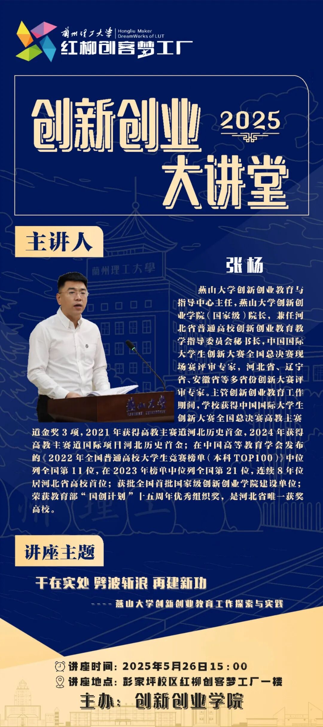 【创新创业大讲堂】干在实处 劈波斩浪 再建新功 --- 燕山大学创新创业教育工作探索与实践