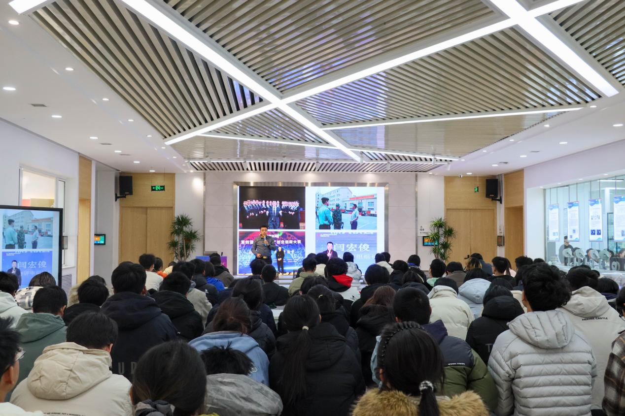 2025年12月6日,兰州理工大学创新创业学院主办的“创新大讲堂”在彭家坪校区红柳创客梦工厂一楼大厅顺利开讲。本次讲座特邀国家级双创导师、国赛评审专家闫宏俊担任主讲,以“从小白到雏鹰——双创时代当代大学生的成长之路”为主题,参会学生150余人。